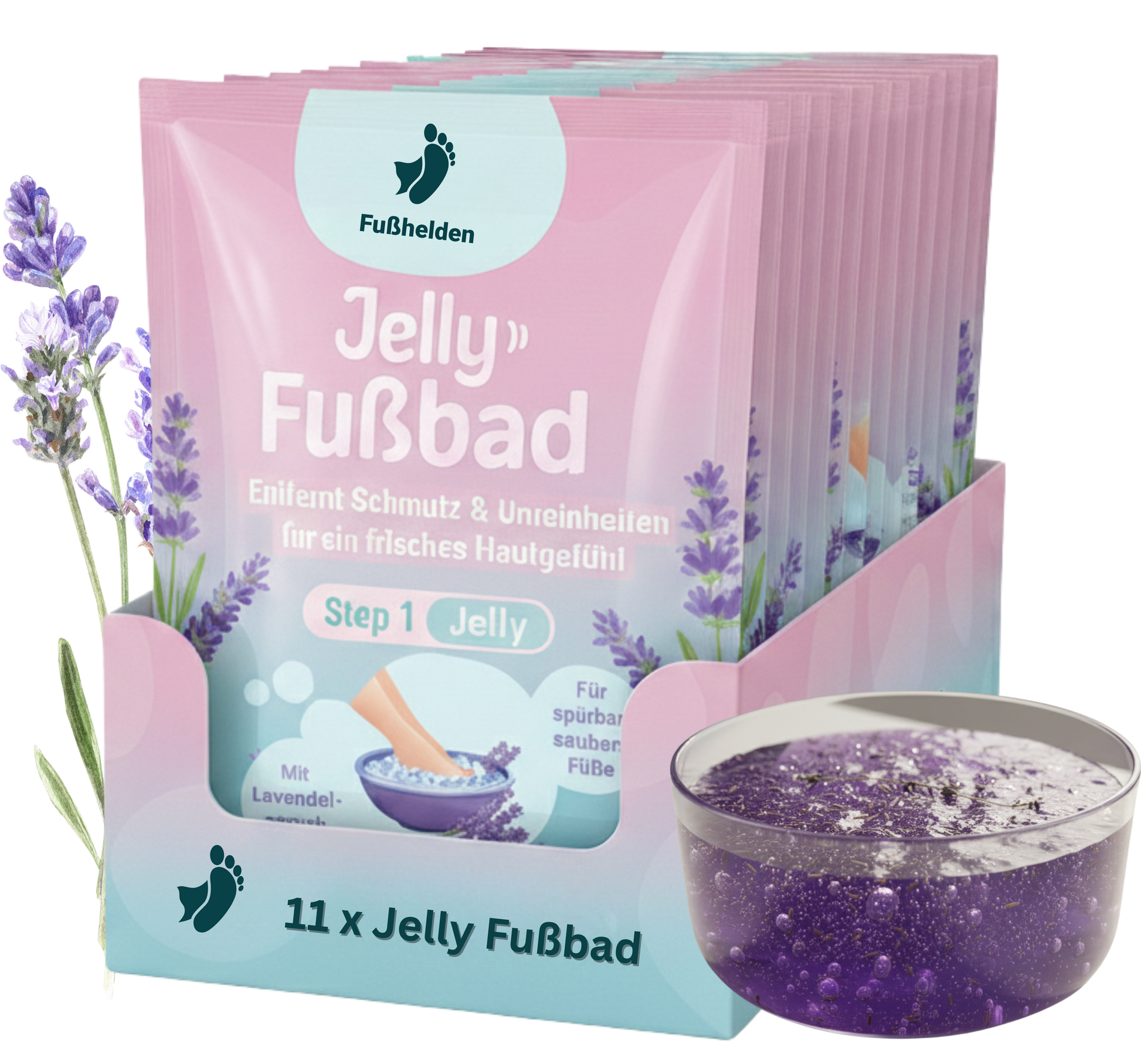 Tauche ein in ein entspannendes Fußbad, das wie Magie deine Füße verwöhnt. Mit jedem Spritzer warmem Wasser verwandelt sich unser Jellypulver in ein luxuriöses Lavendel-Gelee, das deine Füße einhüllt und ihnen wohltuende Pflege schenkt. Spüre, wie die sanfte Gelee-Textur deine Haut umschmeichelt und gleichzeitig Hornhaut weich macht.